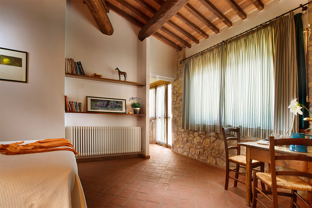 Gli alloggi per gli ospiti si trovano nella casa colonica del ‘700 e nell’annesso agricolo, recentemente ristrutturati nel rispetto degli elementi architettonici originari, e offrono la possibilità di soggiornare in ampi appartamenti dotati di tutti i comfort.
